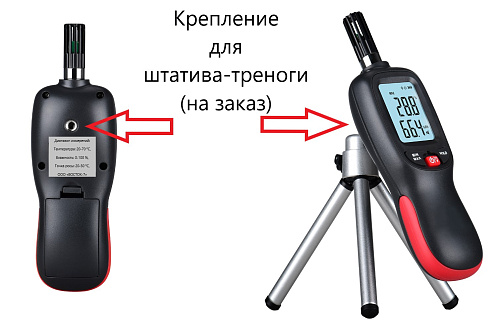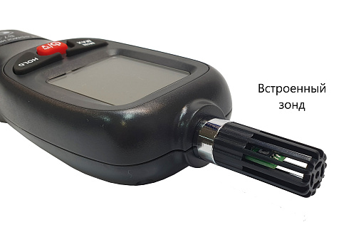 Время измерения параметра, с* - температуры окружающего воздуха / точки росы / влажного термометра (выносной зонд, термопара типа «К») - относительной влажности (выносной зонд) |