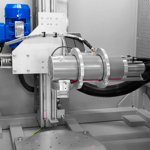 Органы управления манипулятором и параметрами работы излучателя расположены на боковой консоли. Обработка информации о параметрах работы системы происходит с помощью промышленного компьютера и отображается на рабочем мониторе оператора. Система лазерного целеуказателя смонтирована на бленду рентгеновского излучателя и обеспечивает обозначение контура телесного угла рентгеновского излучения. Встроенная система видеонаблюдения позволяет отслеживать процессы, происходящие в защитной камере в режиме реального времени. Два рентгенозащитных лабиринта в виде распашных дверей на боковой стенке камеры предназначены для быстрой и удобной прокладки кабелей связи и питания испытуемой аппаратуры.