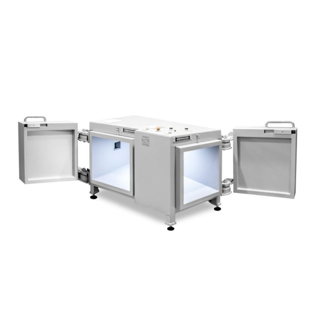 Конструкция защитной камеры выполнена из стали и свинца, имеет две распашные двери для загрузки различных моделей рентгеновских аппаратов. Камера оснащена системой вытяжной вентиляции, блокировкой самопроизвольного открывания дверей, а также блокировкой включения рентгеновского аппарата при открытых дверях. Для индикации режимов работы рентгеновского аппарата предусмотрено световое табло «Рентгеновское просвечивание». Для оперативного ввода кабеля питания и управления рентгеновским аппаратом предусмотрен специальный откатной рентгенозащитный кабельный ввод.